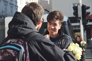 Am 5. Februar haben Flüchtlinge mit Unterstützung der Volkshilfe in Linz Blumen verteilt und so Danke gesagt.