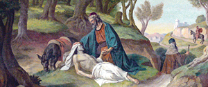 Jesus erzählt als Antwort eine frei erfundene Geschichte: Ein Mann wird überfallen und liegt nun halb tot auf dem Boden. Wie bei vielen guten Erzählungen kommen drei mögliche Retter. Der erste handelt als Priester ganz nach seinen „engen“ Vorschriften. Er vermeidet jede Berührung, um sich ja nicht zu verunreinigen. Genau das Gleiche gilt für den Leviten. Auch er sieht als Tempeldiener die strengen Vorschriften. Lapidar heißt es nur: Sie sehen den Verletzten und gehen weiter. Von der Erzähllogik würde man sich nun einen „normalen“ Juden erwarten, der also kein religiöser Würdenträger ist. Es kommt aber ein Mann aus dem verachteten Samaria, also aus jenem Landstrich, wo man es aus jüdischer Sicht seit Jahrhunderten mit den überlieferten Geboten nicht so genau genommen hat. Und genau so einer bleibt stehen und hat Mitleid. Er ist barmherzig. Nicht die Frommen erfüllen das Gebot der Liebe, sondern dieser „Fremdling“, von dem es niemand erwartet. Und das wird im Detail beschrieben: Er leistet die Erstversorgung, bringt den Verletzten auf eigenes Risiko aus der Gefahrenzone und sorgt sich um die Gesundung. Er baut eine Beziehung zum Niedergeschlagenen auf und wird so für ihn zum Nächsten.
