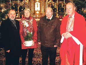 Saxen. Seit 1955 – seit 60 Jahren – versieht Karl Panhofer gewissenhaft den Mesnerdienst in der Pfarre Saxen. Am Stefanitag sagte ihm die Pfarre dafür ein aufrichtiges „Vergelt’s Gott!“. Der Schustermeister und sechsfache Familienvater war nicht nur bei den täglichen Gottesdiensten immer zur Stelle, sondern auch bei 1557 Taufen, bei 453 Trauungen und bei 1071 Begräbnissen. Dazu kamen noch unzählige Rosenkranzgebete, Maiandachten, Kreuzwegandachten und Totenwachen. Überdies war er fünf Perioden hindurch als Obmann des Pfarrgemeinderates engagiert.