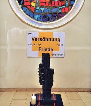 „Wo Versöhnung möglich ist, kann Friede entstehen!“ Diese Worte dominieren die neu gestaltete Friedenskapelle in der Pfarrkirche im Linzer Stadtteil Bindermichl. Die Botschaft ist aktueller denn je: 24 Flüchtlinge haben im Pfarrhof vorübergehend eine neue Heimat gefunden. Sie hoffen auf ein gutes Leben in Frieden. Das Herzstück der Friedenskapelle ist eine Skulptur des 1995 verstorbenen Linzer Bildhauers Alfred Hager. Am 20. Dezember wurde das Denkmal im Rahmen der Gemeindemesse gesegnet und seiner Bestimmung übergeben.