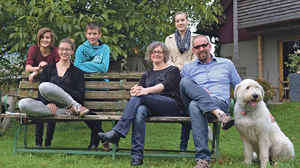 Als Alexandra und Thomas heirateten, wünschten sie sich drei Kinder. Vier sind es geworden. Und sie sind glücklich damit. „Klar, mit vier Kindern kann man sich manche Dinge nicht leisten“, sagt Thomas, „aber die Frage ist: Was ist einem wichtig?“ Die Erziehungsaufgaben und die Organisationsfragen müssen bei sechs Familienmitgliedern gut verteilt werden. Aber rund um die „Kernfamilie“ gibt es ein großes Netzwerk von Unterstützern: die vier „begeisterten“ Großeltern wohnen ebenfalls in Schlins. Als die Kinder kleiner waren, sprangen Freunde ein, „auch wenn es nicht immer so leicht war, einen Babysitter für gleich vier zu finden“, so Alexandra. Selbst Hündin Mara hat ihre Rolle: Wenn die Kinder mal aneinandergeraten und die Stimmen lauter werden, geht sie bellend dazwischen. Nachbarskinder gehen ein und aus bei den Gabriels, am Mittagstisch sitzen dann auch mal acht Kinder, wenn die eigenen andere mitbringen, angekündigt oder auch nicht. Viele Kinder bedeuten, dass sie sich auch gegenseitig erziehen, aufeinander aufpassen, Verantwortung übernehmen, vor allem: selbständig sind. Beim Essen etwa greift jeder selbst zu, es ginge auch nicht anders, so Alexandra. Im Schwimmbad sind die Gabriels mit ihren Vieren schneller umgezogen als manche andere Eltern mit einem Sprössling. Obwohl die Gabriels zwei Bäder haben, steht eines der Kinder freiwillig schon um halb sechs auf, um die Morgentoilette in Ruhe erledigen zu können.