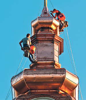Im Sommer wurde der neu gezimmerte Turmhelm auf den Kirchturm der Pfarrkirche Enns-St. Marien aufgesetzt. Anschließend erfolgte in luftiger Höhe die Verkleidung mit Kupferblech. Die Oberflächensanierung des Turmes schloss die umfangreichen Renovierungsarbeiten ab. Nun bereitet sich die Pfarre auf den Schlusspunkt der Arbeiten vor, auf die Steckung des Turmkreuzes im Rahmen des Erntedankfestes am So., 4. Oktober 2015: Festzug vom Hauptplatz in die Pfarrkirche um 9.30 Uhr, anschließend Festmesse und um 11.30 Uhr Turmkreuzsteckung.