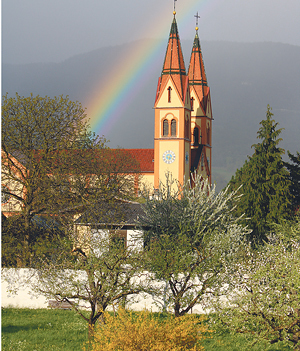 Der Klostergarten in Telfs ist kein öffentlicher Ort, aber offen für Viele und Vieles: 60 Lernwillige kamen zum letzten „Praxiskurs Obstbaumschnitt“, und seit drei Jahren begrüßen die Franziskaner hier die Aussteller eines Adventmarktes. Schulklassen kommen ebenso gerne ins Kloster – und zu den Kaninchen – wie Erstkommunionkinder zum Brotbacken. Seit einigen Jahren lädt ein Labyrinth dazu ein, auf 162 Metern die Weggrenzen einzuhalten und dann, fast überraschend, zur Mitte zu kommen. Ein offener Pavillon dient dem Taizégebet und für Messfeiern bei Exerzitienkursen. Seit 1824 steht dieses Häuschen im Klostergarten, geschmückt mit franziskanischen Motiven aus der Hand von Leopold Puellacher aus Telfs. Der weitläufige Klostergarten der Franziskaner ist das, was er sein will: der Garten des Klosters. Nicht ein Schaugarten, aber ein beschaulicher Ort. Da wird auf der großen Wiese Heu gemacht, von dem die Hasen genauso profitieren wie Bauern aus der Umgebung. Da gibt es Beete und Beeren, einen alten Apfelbaumbestand mit seltenen Sorten, und es reifen sogar Weintrauben – zur Freude der vielen Vögel. Franziskus hätte sich mitgefreut!