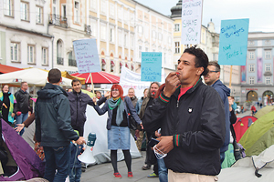 Es sollte ein klares Zeichen gegen die Zeltunterkünfte für Flüchtlinge sein. Rund 150 Personen schlugen am 26. Mai demonstrativ ihre Zelte auf dem Linzer Hauptplatz auf, um gegen die unwürdige Unterbringung von Flüchtlingen zu protestieren. „Wir haben heute zu diesem Flashmob aufgerufen, um ein deutliches Zeichen zu setzen: Es kann nicht sein, dass in Österreich Flüchtlinge in Zelten untergebracht werden müssen“, sagt Stefan Schöttl von der Katholischen Jugend OÖ und Initiator der Aktion. Es gäbe genügend Quartiere, in denen Menschen, die auf der Flucht sind, eine feste Bleibe bekommen können, so der Appell der Demonstranten an die Politiker.