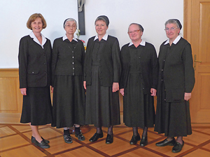 Die neue, alte Leitung Steinerkirchen an der Traun. Im Rahmen des Generalkapitels der Benediktinerinnen vom Unbefleckten Herzen Mariens, wie die Steinerkirchner Schwestern offiziell heißen, wurde am 6. Mai 2015 die Ordensführung neu gewählt: Sr. Dr. Hanna Jurman (Mitte) wird der Kongregation für eine weitere Amtszeit von sechs Jahren als Priorin vorstehen. Ebenso wurden alle Generalrätinnen in ihrem Amt bestätigt: Sr. Bernadette Aichinger (von links), Sr. Hildburg Radinger, Priorin Sr. Hanna Jurman, Sr. Renate Schafleitner, Sr. Hildegard Ursprunger. In einem zweiten Teil des Generalkapitels Mitte Juli 2015 werden weitere Entscheidungen getroffen.