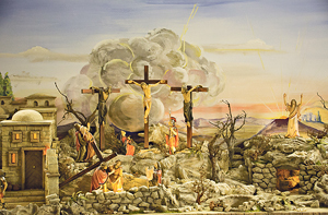 Regau. Seit dem Passionssonntag befindet sich in der Pfarrkirche eine Passionskrippe aus der Werkstätte des Südtiroler Künstlers Rifesser. Das Werk aus dem Grödnertal hat 4.700 Euro gekostet und ist eine Spende von Hubert Schimpl, der die Krippe auf dem Sterbebett Pfarrer Franz Hörtenhuber versprochen hatte. „Er hat ein großes, gutes Werk für den Glauben der Pfarrbevölkerung getan“, würdigt der Pfarer den Stifter: „Vergelt’s Gott, lieber Hubert!“