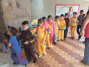Mittlerweile sind die Ängste weg und sie sagt: „Ich liebe meine Arbeit. Mir hat noch nie etwas so viel Spaß gemacht.“ Glücklich macht sie dabei, wenn sie merkt, dass ihre Meinung zählt, ihr mehr und mehr Verantwortung übertragen wird, wenn sie zu den Familien nach Hause eingeladen wird. Von den Kindern habe sie viel gelernt. „Sie zeigen mir, dass man alles schaffen kann, egal mit welchen Einschränkungen man umzugehen hat. Man soll nicht so viel Angst haben. Was hat man schon zu verlieren?“ Ihre eigenen Sinne sind geschärft worden durch die letzten Monate. „Ich versuche die Aufgaben, die die Kinder in der Schule machen müssen, ebenso ganz blind zu machen.“ Ständig präsent sind in der Millionenstadt Guadalajara der illegale Drogenhandel und die damit verbundene Gewalt. „Ich weiß, in welchem Land ich bin und bin wachsam. In der Dunkelheit gehe ich nicht mehr alleine aus.“