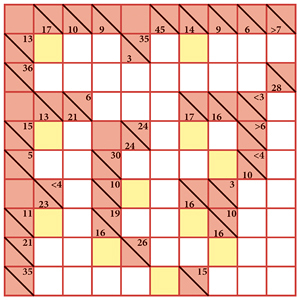 Die Zahlen in den rosa Kästchen geben an, welche Summe die Addition der Zahlen rechts daneben (wenn der Eintrag rechts oben steht) bzw. darunter (wenn der Eintrag im Kästchen unten platziert ist) ergibt. Es kommen ausschließlich Zahlen von 1 bis 9 vor. Für eine Summenbildung darf keine Zahl mehrmals verwendet werden. < bedeutet, dass die einzutragende Zahl kleiner als die Zahl vor diesem Zeichen sein muss, umgekehrt verlangt > eine höhere Zahl als die Zahl davor. Machen Sie mit. Schicken Sie Ihre Lösung bis 24. April 2015. Unter den Einsendungen verlosen wir ein Buch mit Logik-Rätseln. (Die gelben Kästchen können Sie als Hilfe nehmen – in ihnen steht immer die gleiche Zahl.) Adresse: KirchenZeitung, Kapuzinerstraße 84, 4020 Linz, E-Mail: service@kirchenzeitung.at