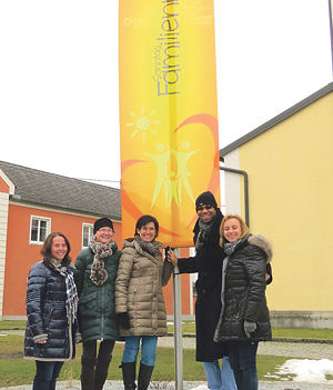 Die Pfarre Hartkirchen hat sich zur Bewerbung der Familiengottesdienste – die jeweils am ersten Sonntag jeden Monats stattfinden – etwas Besonderes einfallen lassen. Jeweils ein paar Tage vorher wird eine Fahne gehisst. Auf der ist zu lesen: „Sonntag – Familienmesse“. Das Design stammt von Iris Burkhardt, finanziert wurde die Fahne vom Katholischen Bildungswerk.