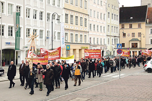 Schweigend zogen die 350 Teilnehmer/innen von der Filzmoserwiese über den Stadtplatz zur Stadtpfarrkirche. Aufgrund der aktuellen Gräueltaten gegenüber Christen, vor allem in Syrien, wurde das Menschenrecht auf Religionsfreiheit als Voraussetzung für Frieden, eingefordert. Bei der anschließenden ökumenischen Andacht war auch der serbisch-orthodoxe Bischof Andrej Cilerdzic anwesend.