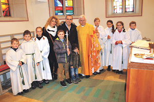 Der zehnjährige Sam aus Syrien ist fast seit einem Jahr begeisterter Ministrant und bei nahezu allen Gottesdiensten dabei. Pfarrer P. Meinrad Brandstätter hat ihm einen Wunsch erfüllt und ihn in einer Segensfeier noch näher in die Pfarrgemeinschaft hereingenommen – als nachträgliche Erstkommunion in Österreich. Die christliche Familie musste wegen ihres Glaubens die Heimat verlassen. Das Einwurzeln gelingt recht gut. Die Familie darf bleiben und hat auch schon eine Wohnung gefunden. Nach dem Gottesdienst wurde die ganze Feiergemeinde mit syrischen Süßigkeiten verwöhnt.