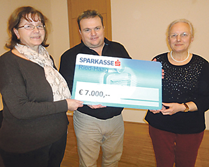 Geiersberg. Die Pfarre hat den Erlös aus dem Adventkonzert (1.855 Euro) an Familie Grasl übergeben als Unterstützung für die Betreuung ihrer beeinträchtigten Tochter Paula. Haag am Hausruck. Die Katholische Frauenbewegung Haag organisierte einen Adventmarkt. Den Erlös von 7.000 Euro übergaben Melitta Kumpfmüller und Pauline Möseneder an Pfarrleiter Johannes Mairinger für den Pfarrheim-Umbau.