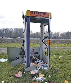 Goldwörth. Einem Vandalenakt fiel die Bibliothek am Goldwörther Badesee zum Opfer. Unbekannte Täter brachten einen Sprengkörper, vermutlich Silvesterknaller, in der adaptierten Telefonzelle zur Explosion. Die Büchereistation wurde völlig zerstört. Die öffentliche Bibliothek der Pfarre Goldwörth bot seit einigen Jahren zur Badesaison den Badegästen Bücher und Zeitschriften zur freien Entnahme an. Seit Sommer 2012 in der für diesen Zweck umgebauten Telefonzelle. Die Bibliothek entwickelte sich bereits zu einer Tauschbörse, wo Leute Bücher entnahmen und andere wieder hineinstellten.