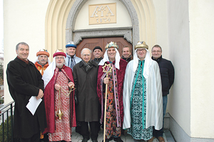 Die Könige gehören dem Kirchenchor an. Für die heurige Begrüßungstour der Neo-Dörnbacher hat die Pfarre bei Hans Dieter Mairinger (Mitte) neue Texte für die Dreikönige in Auftrag gegeben, die sie von P. Balduin Sulzer aus dem Stift Wilhering vertonen ließ. Am 6. Jänner wurde in Dörnbach und im Stift Wilhering das Werk uraufgeführt. Überdies waren die Dörnbacher Sternsinger in Gewändern aus fair gehandelten Stoffen unterwegs.