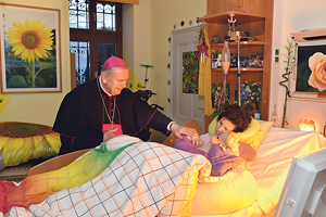 Nach dem Gottesdienst zeigte sich der Bischof beeindruckt vom kräftigen Mitsingen und Mitbeten der Bewohner/innen, es sei besser als in so mancher Pfarrgemeinde gewesen. Beim Gang durchs Haus kam es zu berührenden Begegnungen mit den Bewohner/innen. So besuchte der Bischof auch eine junge Wachkoma-Patientin. Bischof Ludwig wurde unter anderem von Christa Seyrl-Bergthaler, Pastoralassistentin im Pflege- und Betreuungszentrum, begleitet. Sie nennt Achtung, Wertschätzung, Behutsamkeit und Respekt vor den Menschen als große Anliegen der Seelsorge im Haus. Bei Wachkoma-Patienten „geht es um aufmerksames Da-Sein, sich einzulassen auf nonverbales Kommunizieren“. Wichtig ist auch der Kontakt zu den Angehörigen.
