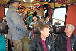 Die Ilztalbahn-Engagierten kamen nach Aigen und fuhren von dort mit der Bahn nach Linz. Abt Martin vom Stift Schlägl, der das Anliegen „Mühlkreisbahn als Vollbahn“ unterstützt, stellte zur Begrüßung warmen Kaffee bereit.