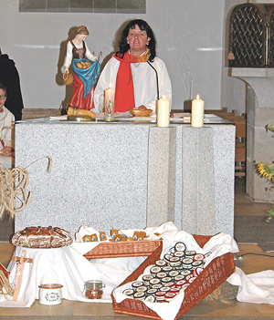 Zum Festtag der Trachtenheiligen Notburga am 13. September gestaltete die Goldhauben- und Kopftuchgruppe St. Martin im Mühlkreis einen feierlichen Gottesdienst mit Pastoralassistentin Sieglinde Lichtenwagner sowie Goldhauben-Gruppen des Bezirkes Rohrbach. Im Rahmen dieser Feier wurden auch die eigenhändig gestickten und gebastelten Haussegen, welche mit freiwilligen Spenden bei der anschließenden Agape erworben werden konnten, gesegnet.