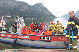 Altmünster – Ebensee. Josef Stüger aus Ebensee bereitet sich an der Pädagogischen Hochschule auf seinen künftigen Beruf als Lehrer vor. In den Ferien arbeitete der junge Ebenseer daher zwei Monate lang unentgeltlich als Betreuer im SOS-Kinderdorf Altmünster. In dieser Funktion hat er sich gemeinsam mit seinen Kolleginnen Christina,Theresa und Magdalena zum Ziel gesetzt, den Kindern einen Erlebnistag zu schenken. Nun war es soweit: Begleitet von den freiwilligen Feuerwehren Altmünster und Ebensee freuten sich acht Kinder der Wohngruppe Simba über eine Fahrt mit dem Feuerwehrboot auf dem Traunsee und waren interessierte Teilnehmer bei Löschübungen und Einsatzvorführungen.