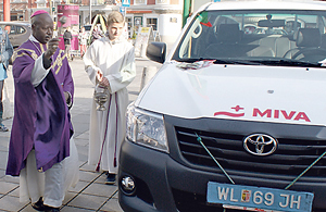 Schönau im Mühlkreis. Pfarrer Martin Truttenberger segnete am 30. März 2014 ein MIVA-Auto, das Fr. Ferdinand Baruguzie in Tansania gute Dienste leisten wird. Fr. Ferdinand war beinahe zehn Jahre in mehreren Mühlviertler Pfarren als Priester tätig, ehe er wieder in seine Heimat zurückgekehrte, wo er nun eine Pfarre leitet. Der Mühlviertler Verein „Azubi-Kibwigwa“ unterstützt Fr. Ferdinand. Er hat auch die Hälfte des Autos finanziert, die zweite Hälfte kam von der MIVA.