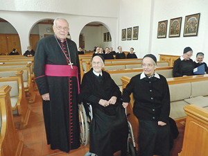 Die Benediktinerinnen Sr. Tarcisia Niedergrottenthaler (im Bild rechts) und Sr. Heriberta Schwarz feierten am 25. März 60-Jahr-Jubiläum ihrer Profess. Bischof Maximilian Aichern, der dem Festgottesdienst vorstand, dankte für die vielfältigen Dienste beider Schwestern. Sr. Tarcisia war vorwiegend mit hauswirtschaftlichen Aufgaben betraut. Von 1987 bis 1999 war sie im Haushalt von Diözesanbischof Aichern in Linz tätig. In dieser Zeit betreute sie auch Altbischof DDr. Franz Salesius Zauner bis zu seinem Tod im Februar 1994. Sr. Heriberta wirkte vor allem als Kindergärtnerin, als Pfarrschwester, in der Altenpflege und als Novizenmeisterin.