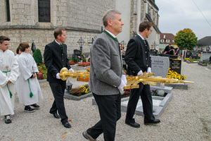 Krönender Abschluss der Arbeiten waren am 1. Oktober 2017 die Messfeier mit Abt Ambros Ebhart und Pfarrer P. Albert Dückelmann und die Segnung des neu restaurierten und mit Blattgold versehenen Turmkreuzes mit der Turmkreuzsteckung. Abt Ambros betonte in seiner Predigt die Bedeutung des Kreuzes für die christliche Glaubensgemeinschaft und für die Pfarrgemeinde.