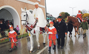 Am 3. November fand in Pettenbach der Leonhardiritt statt. Rund 50 Pferde samt Reiter/innen trotzten Regen und Sturm, angeführt von Pater Siegfried Eder vom Stift Kremsmünster (im Bild).