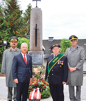 Die beiden Weltkriege forderten in dem Ort 157 Todesopfer. Alexander Barthou (rechts), Generalsekretär des Österreichischen Schwarzen Kreuzes (Kriegsgräberfürsorge), erinnerte in seiner Ansprache an Albert Schweitzer, der betonte, dass „Kriegsgräber die großen Prediger des Friedens seien und an den Kreuzen man erst die Zerbrechlichkeit des Friedens erkennen kann“!
