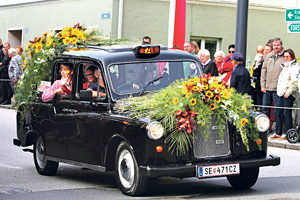 Mit dabei beim Erntedank in Sierning: ein altes englisches Original-Taxi.