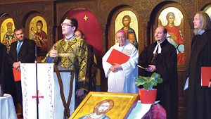 Erzpriester Dragan Micic (rechts) und sein Sohn Nemanja (am Pult) waren die Gastgeber für den heurigen ökumenischen Gottesdienst in der Weltgebetswoche für die Einheit der Christen.