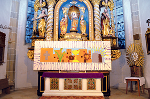 Zell am Pettenfirst. Die Volksschulkinder haben heuer das Fastentuch der Pfarre gestaltet. Dieses hängt vom Aschermittwoch bis Karsamstag und verdeckt den Hochaltar.