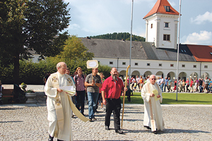 Waldhausen. Wallfahrer/innen aus 27 Pfarren des Mühl-, Wald- und Mostviertels nahmen am 7. September 2014 an der 12. Friedens-Sternwallfahrt nach Waldhausen teil.