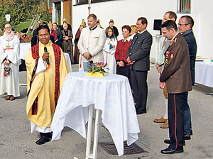 Bei strahlendem Sonnenschein war es soweit: Pfarrer P. John Herin SVD konnte im Rahmen des hervorragend besuchten Erntedankfestes die Fotovoltaik-Anlage segnen und offiziell in Betrieb nehmen.