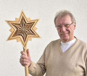Baumgartenberg. Mit neuen Sternen werden die Heiligen Drei Könige der Pfarre heuer unterwegs sein. Hannes Zielbauer (im Bild) – er ist leidenschaftlicher Kerbschnitzer – gestaltete für jede der vier Gruppen ­einen Stern mit unterschiedlichen Motiven.