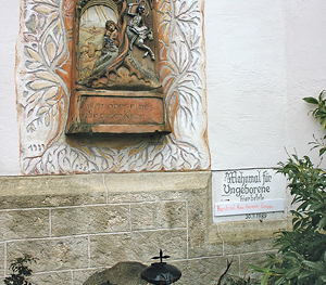 Hohenzell. An der Kirche gibt es seit 25 Jahren ein Mahnmal für die ungeborenen Kinder mit der Inschrift „Wer aber ­eines von diesen Kleinen“. Später wurde es mit einem Sgraffito ergänzt, dass hier Kardinal Groër gebetet hat. Gegen diese Verknüpfung gibt es Protest von kirchlichen Missbrauchsopfern.