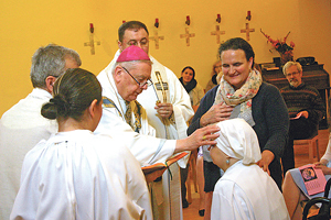 Gleich zweimal spendete Bischof Ludwig Schwarz am 31. März 2015 das Sakrament der Taufe. Die an Blutkrebs erkrankte Rebekka Talita und ihre Mutter Xheraldina Maria hatten sie sich innigst gewünscht.