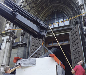 Mehr als neun Stunden haben Steinmetzmeister Gerhard Fraundorfer und seine Leute der Dombauhütte am 3. August 2017 gewerkt: dann stand der neue Altar, ein knapp sieben Tonnen schwerer Kalkstein-Block, millimetergenau am vorgesehenen Platz.