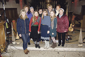 Ried im Traunkreis. Die Leiterin der Katholischen Frauenbewegung (kfb) von Ried Renate Steinmaurer (links vorne) freut sich mit Mitgliedern des Helferinnen-Kreises, dass die Poxrucker Sisters (Mitte) zweimal – nachmittags und abends – die Kirche gefüllt haben.