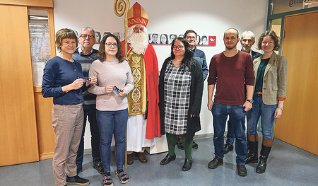 Der „SEI SO FREI-Nikolaus“ hat die Kirchenzeitungs-Mitarbeiter/innen bei seinem Besuch in der Redaktion mit fair gehandelter Schokolade beschenkt.