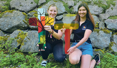 Schüler/-innen des 3. Jahrgangs des Ausbildungsschwerpunkts ECO-Design fertigten Glaskreuze an, um die Klassenzimmer optisch neu zu designen.