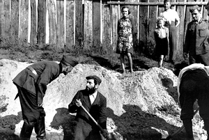 „Kolonne Grünspan lernt arbeiten“. Ein Transparent mit diesem zynischen Satz halten zur Zwangsarbeit genötigte Juden marschierend hoch. – Das zeigt ein Foto, eines von vielen Dokumenten der Ausstellung „Zwangsarbeit im Nationalsozialismus“ im Museum Arbeitswelt Steyr.