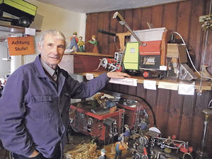 Ein Hobby im Alter. Das ist eine gute Sache. Johann Huemer aus Vorchdorf baut aus Dingen, die andere Leute weggeworfen haben, Modelle von Maschinen. Und er hat aus seinem Beruf auf originelle Weise Abschied genommen, indem er all die Geräte nachgebaut hat, mit denen er früher gearbeitet hat.