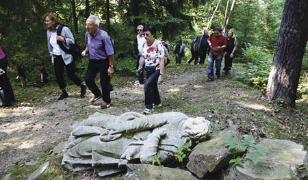 Der historische Passionsweg in Rimov führt durch Wiesen und Wälder.