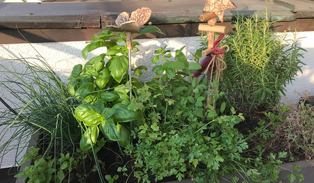 Kürzlich bewunderte ich auf dem Balkon einer Freundin ihr neues Kräuterbeet. Angelegt in angenehmer Höhe, also fast in einem Hochbeet, wachsen die Pflänzchen dort der Sonne entgegen.