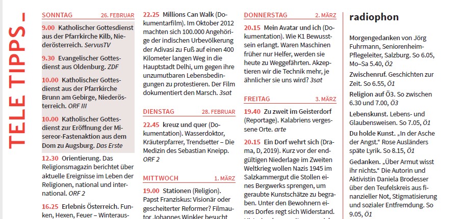 Die KIRCHEN_ZEITUNG empfiehlt folgende Veranstaltungen